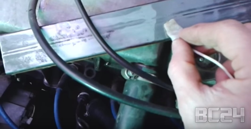 У кого хватит терпения таким образом может и обработать весь кузов автомобиля. После все смывается водой. А для тех кто хочет перестраховаться, могут смывать легким щелочным раствором, например, раствором пищевой соды. Цинк можно достать из солевых батареек или из старых советский карбюраторов. Вместо аккумулятора можно использовать зарядное устройство. Вот на этом месте 2 года назад у нас была сильная ржавчина, которую мы зачистили и оцинковали таким методом.
