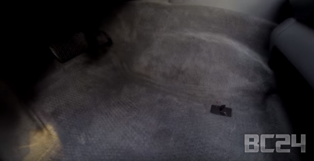 Вот фото грязного пола автомобиля, до применения очистителя оббивки салона.