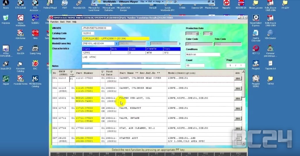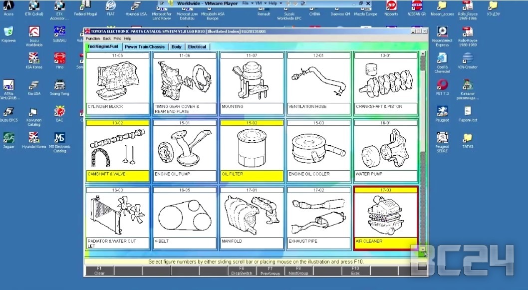 Заходим в программу с каталогами VMware Player. Запускаем программу Тойота и выбираем страну производителя.
