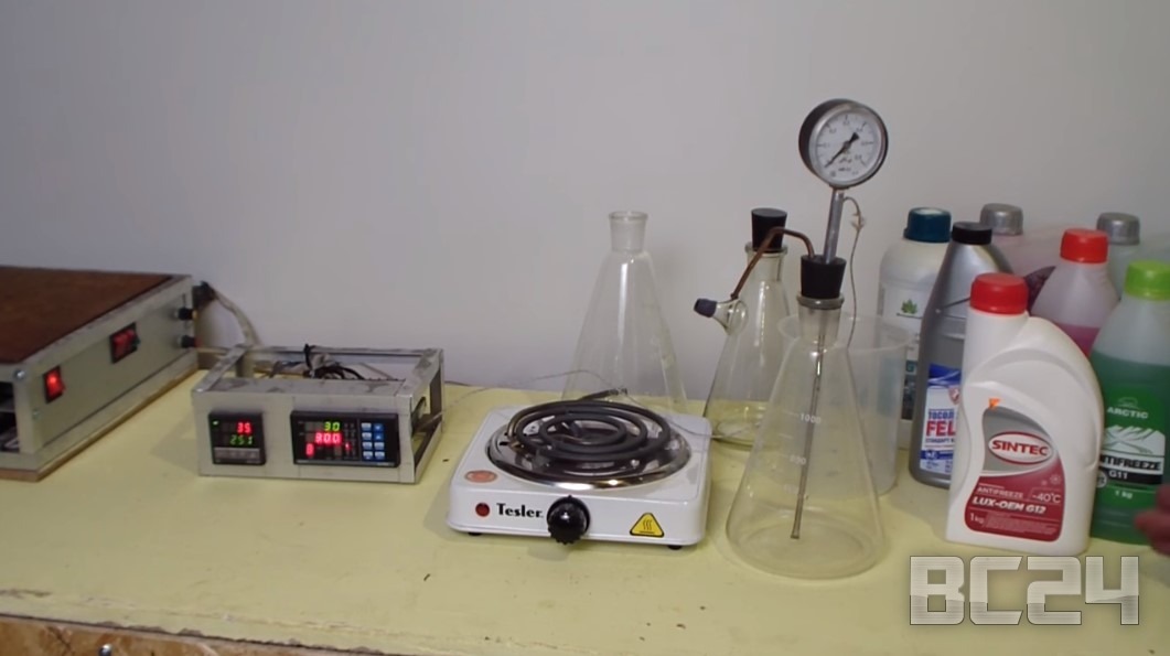 Тест на температуру кипения и горение смеси антифризов
