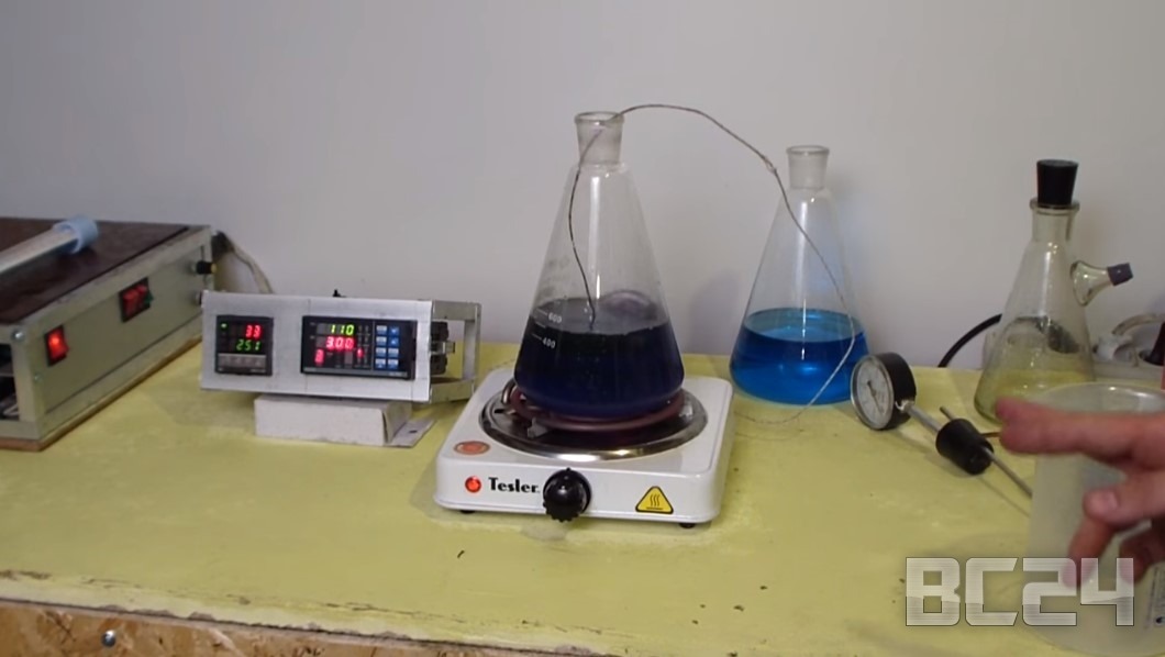 Для точности эксперимента мы нагреем в нашей колбе сначала воду до 100 градусов.