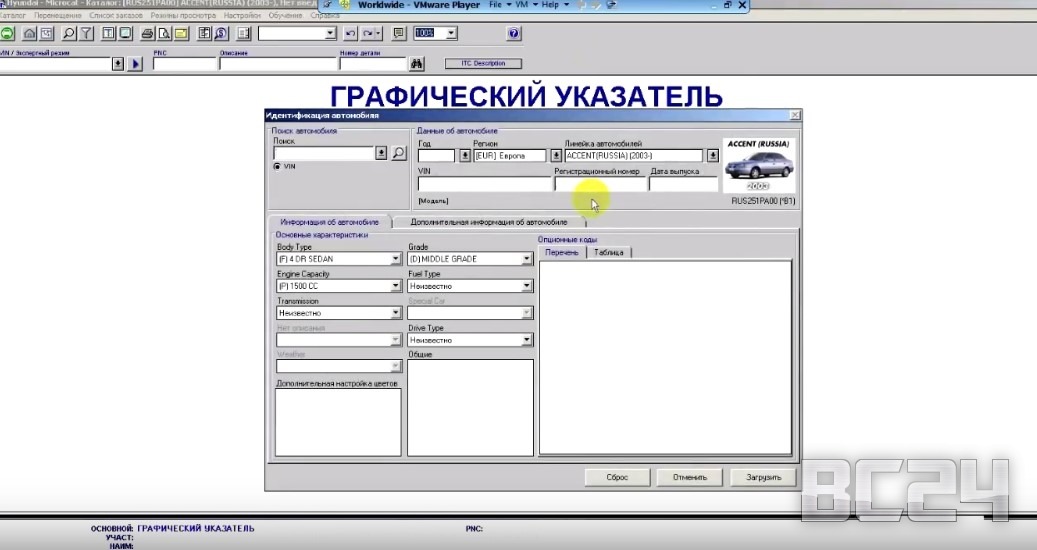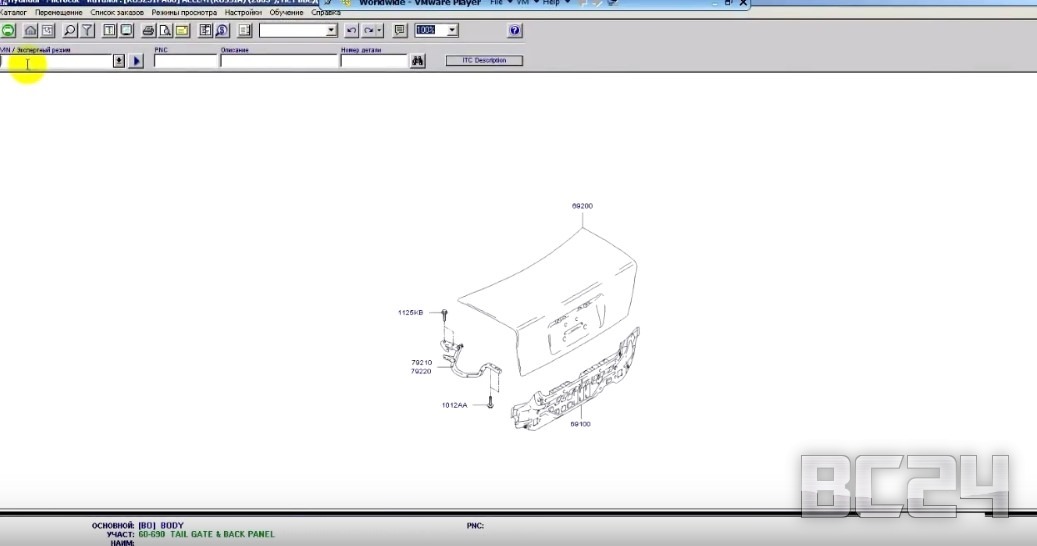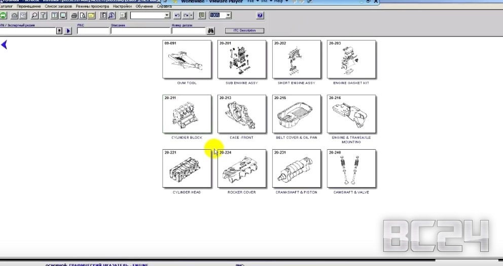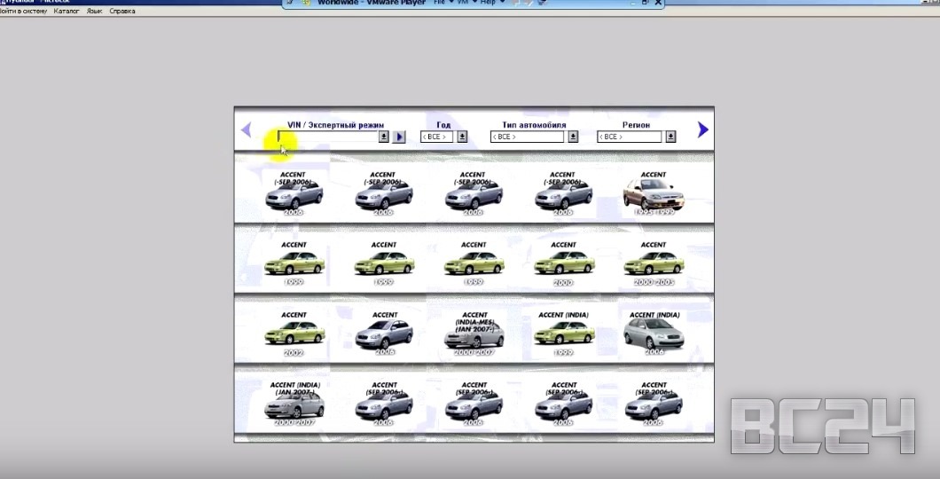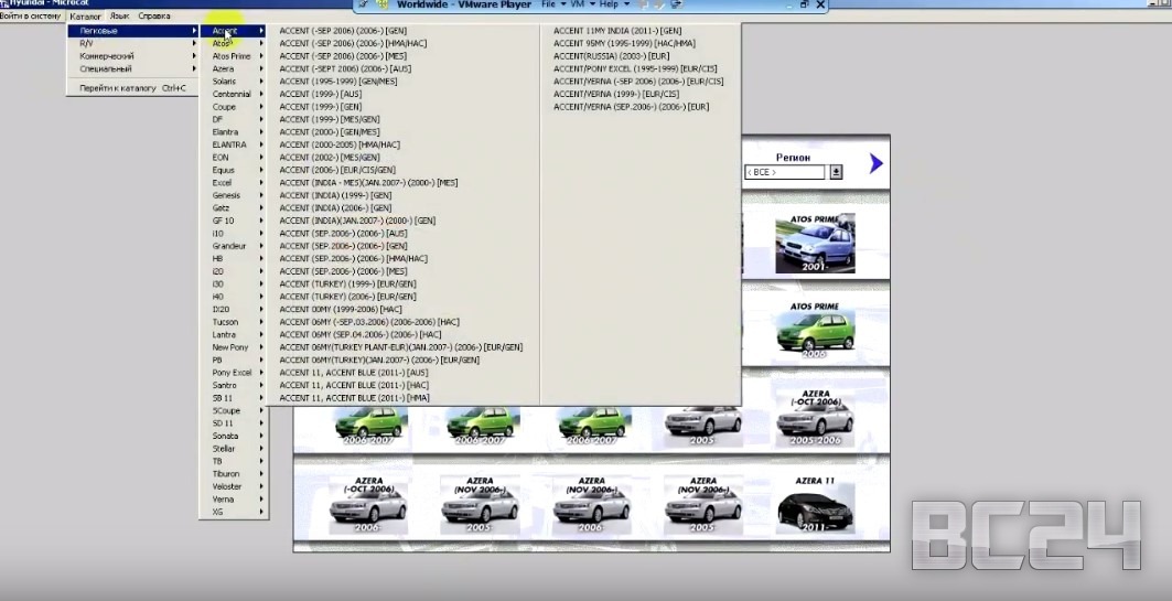 Ну что же открываем каталог VMware Player, о который мы рассказывали в предыдущей статье и открываем микрокат каталог Hyundai. Рассмотрим на его примере.