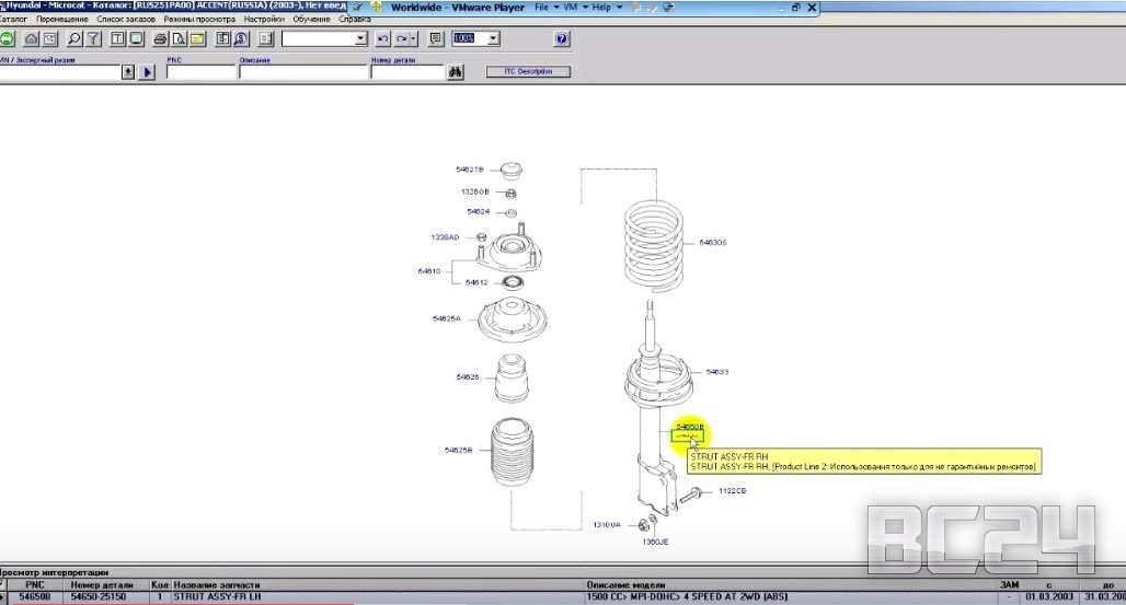 Как заказать деталь из каталога VMware Player на KIA, Hyundai?