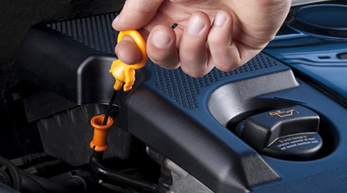 - Временно откладываем бутылку, берем щуп и проверяем уровень. Если он достиг отметки MAX, отлично, если нет, подливаем еще немного.