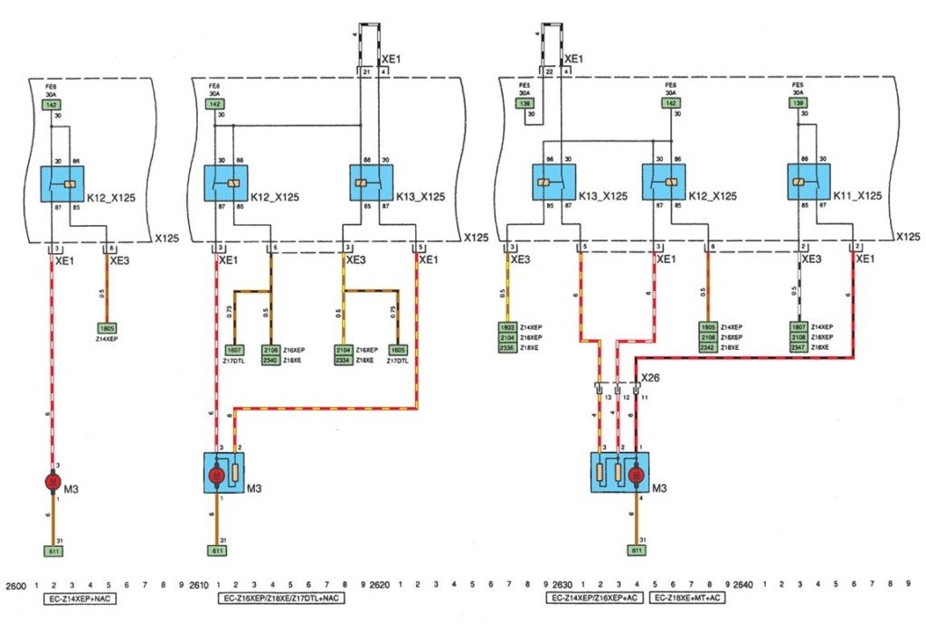 Для начала рассмотрим, из каких систем состоит электрическая схема автомобиля Опель Астра А, Б или H: